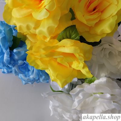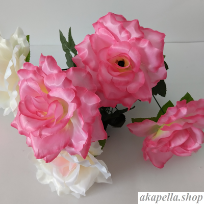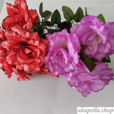 Букет "Троянда" (вісім кольорів), (атлас оброблений з блиском, на дотик тканина напівм'яка, d квітки - 12 см, h букету (з квіткою) - 42 см (включно з 7 см тримачем знизу).