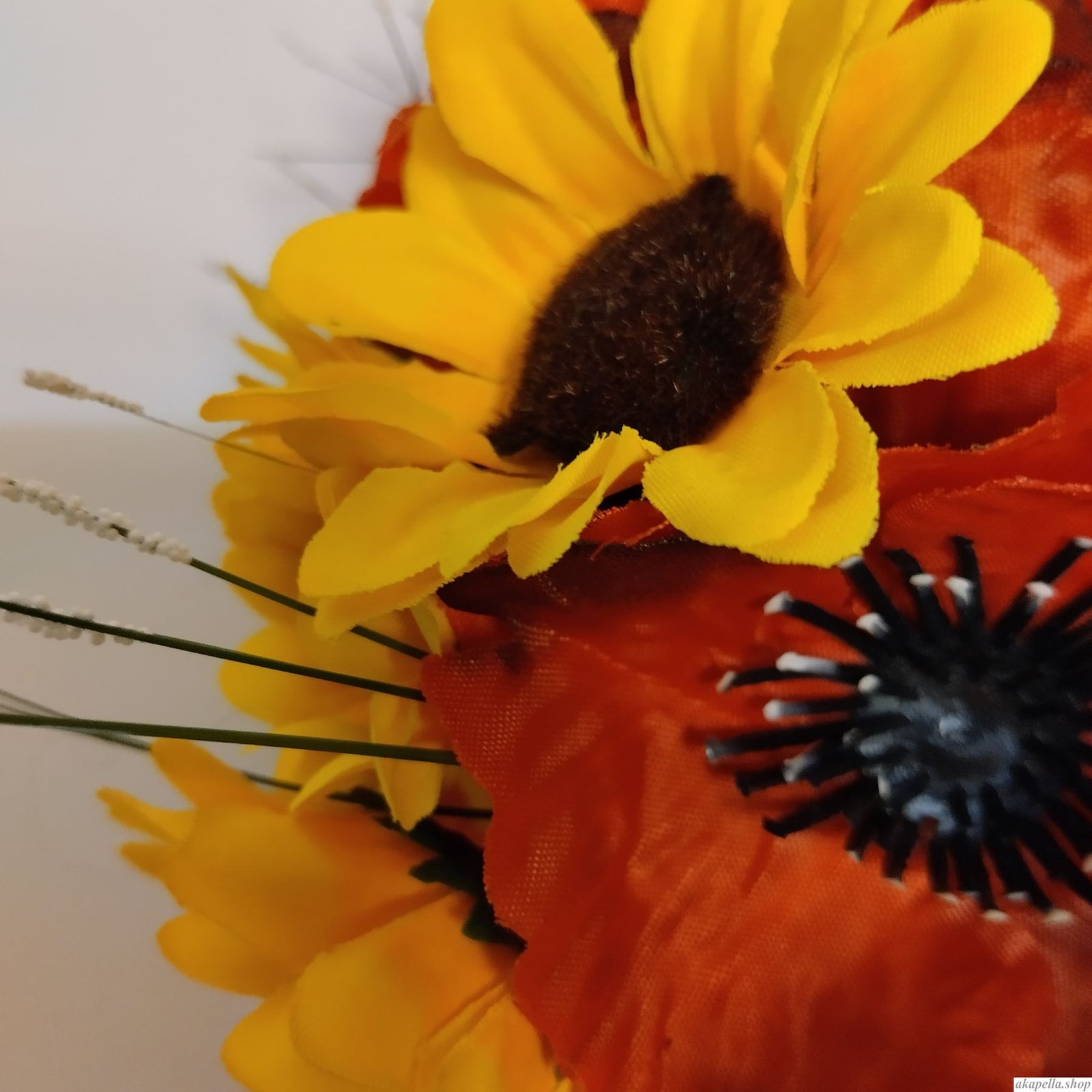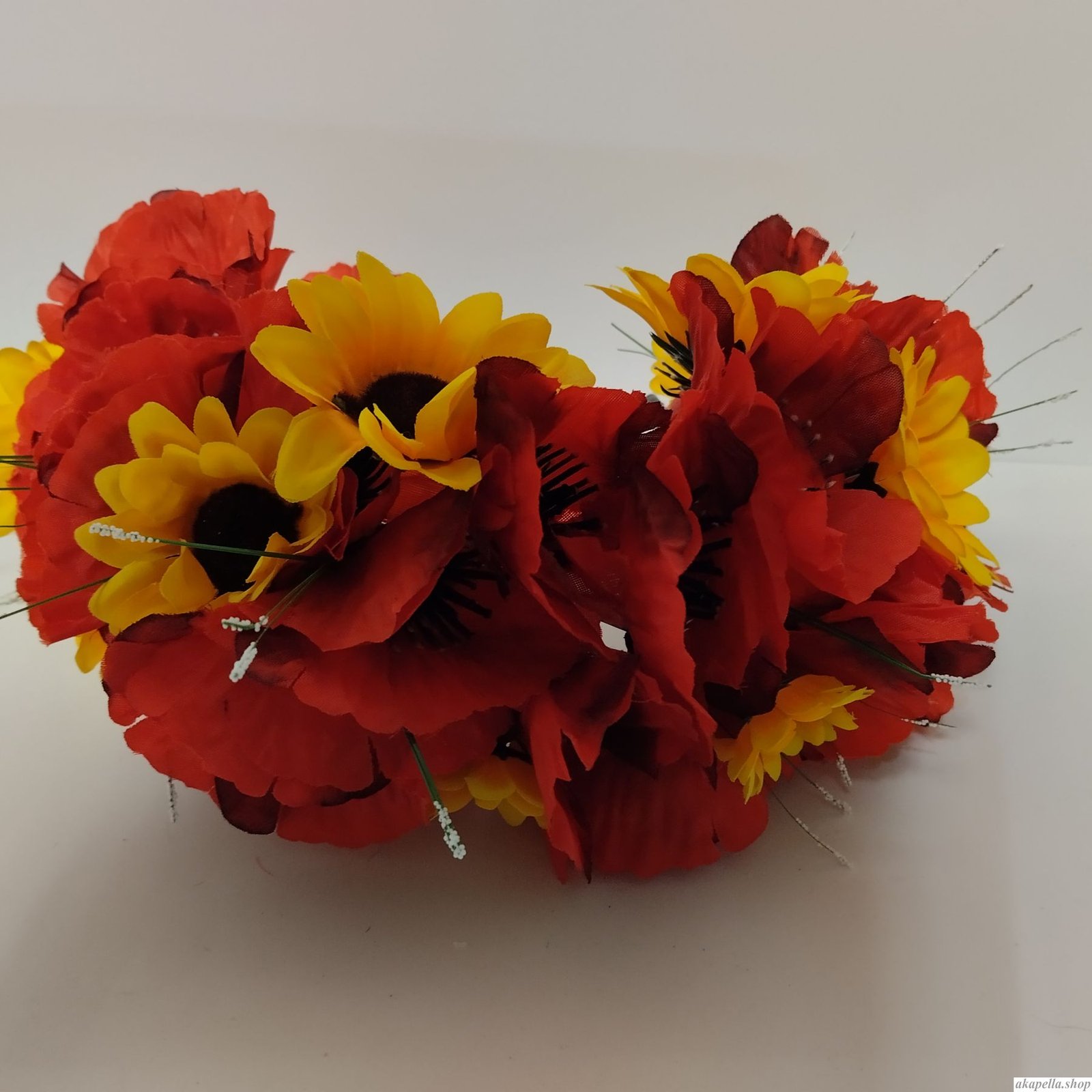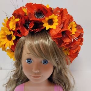Вінок об'ємний - Маки з соняшником. Квіти фабричні гарної якості.