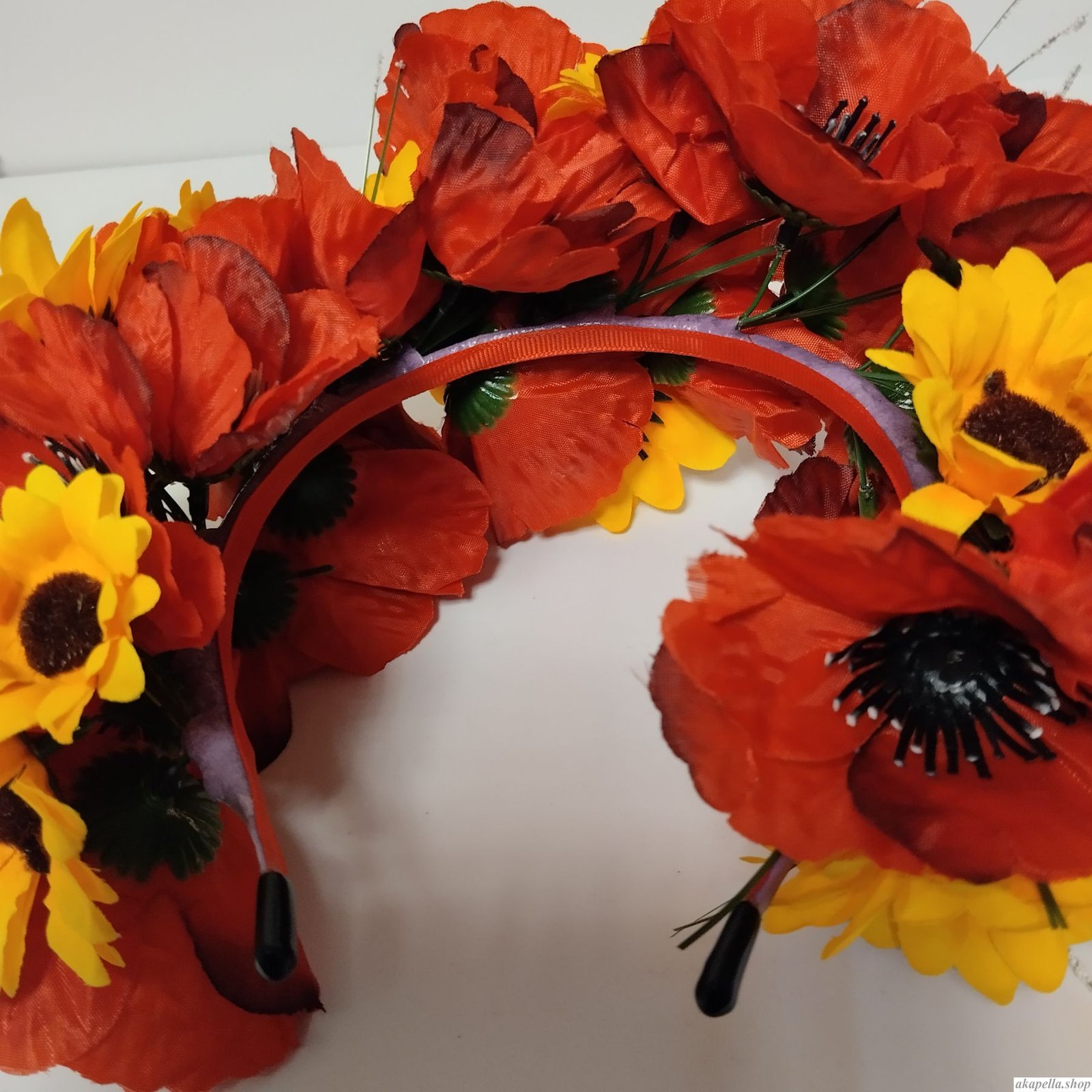 Квіти на обручі:мак, соняшник