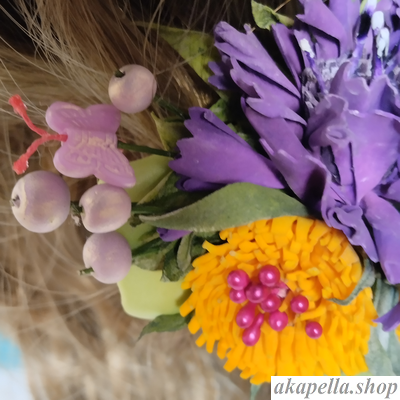 Заколка мальвинка - Волошки (хендмейд). Матеріал - оброблений фоаміран. На фото заколка виглядає трохи більше (див. характеристики).